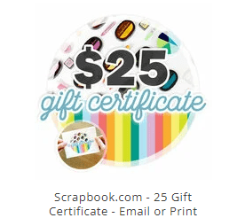 First up, we have the inLinkz challenge, where a generous $25 gift certificate to is the monthly prize. You choose the card: Amazon, SSS, Etsy or Scrapbook.com.